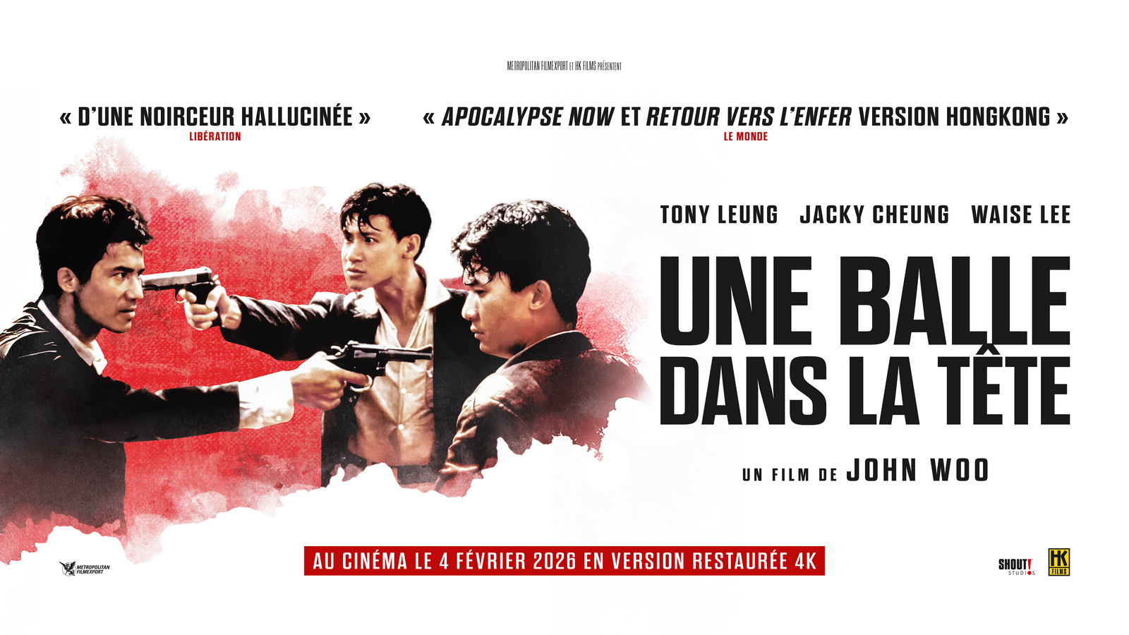 Balle tragique à Hong Kong - Metropolitan continue de sortir ses versions restaurées des classiques du studio Golden Princess au rythme d'un film par mois. Cette semaine, c'est le célèbre Une Balle dans la tête de John Woo qui revient dans nos salles. Entre film de gangsters hongkongais et hommage à peine déguisé au Voyage au bout de l'enfer de Michael Cimino, c'est probablement une des œuvres les plus appréciées du cinéaste. Bon, maintenant on veut Peking Opera Blues.